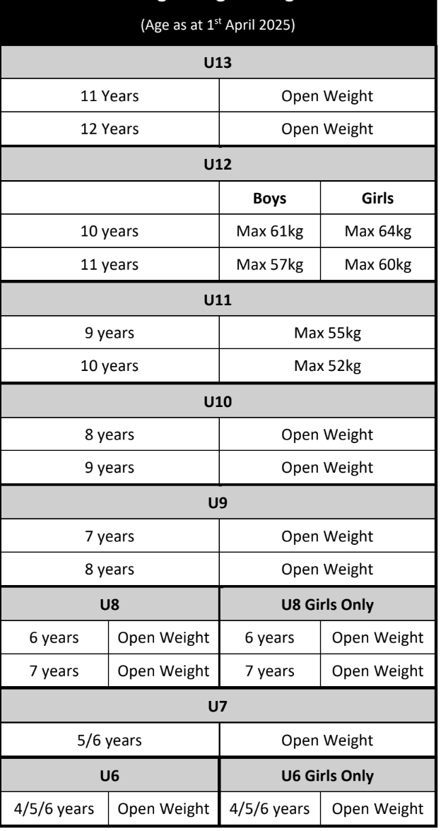 There are very strict age/weight limits for Under 9s and up.